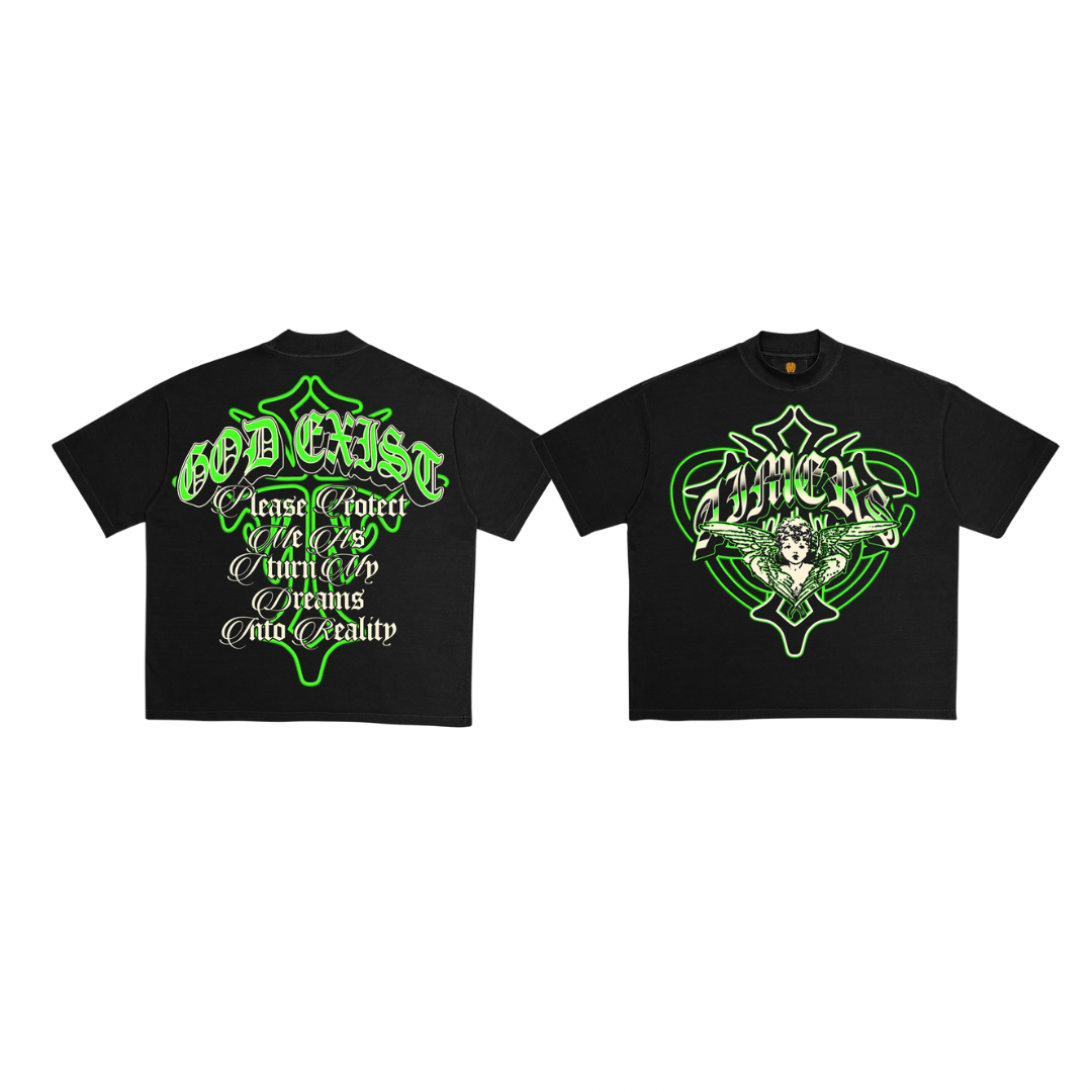 - Glow in the dark 'GOD EXIST' back print